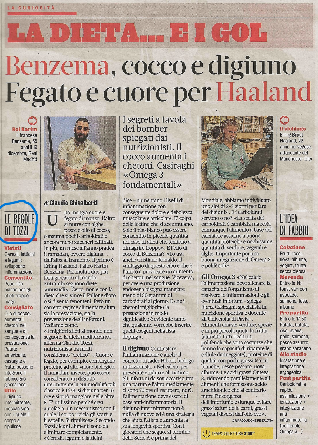 Ha collaborato con una rubrica di alimentazione e allenamento sportivo sul sito SKY SPORT e Gianlucadimarzio.com ed è stato intervistato in varie occasioni dalla Gazzetta dello Sport.